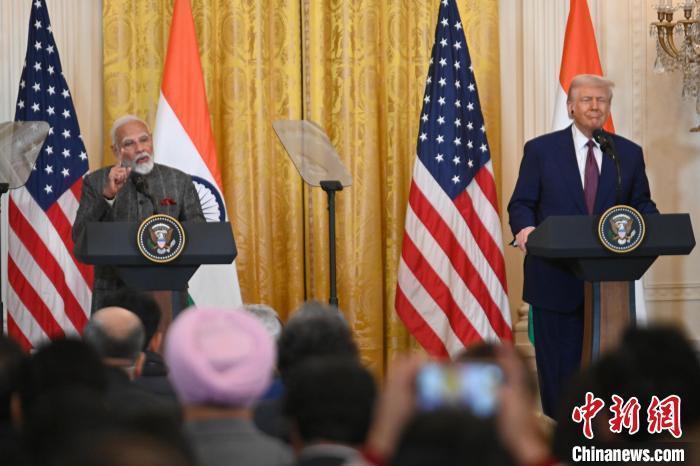 当地时间2月13日,华盛顿,美国总统特朗普与印度总理莫迪在白宫出席联合记者会。中新社记者 陈孟统 摄